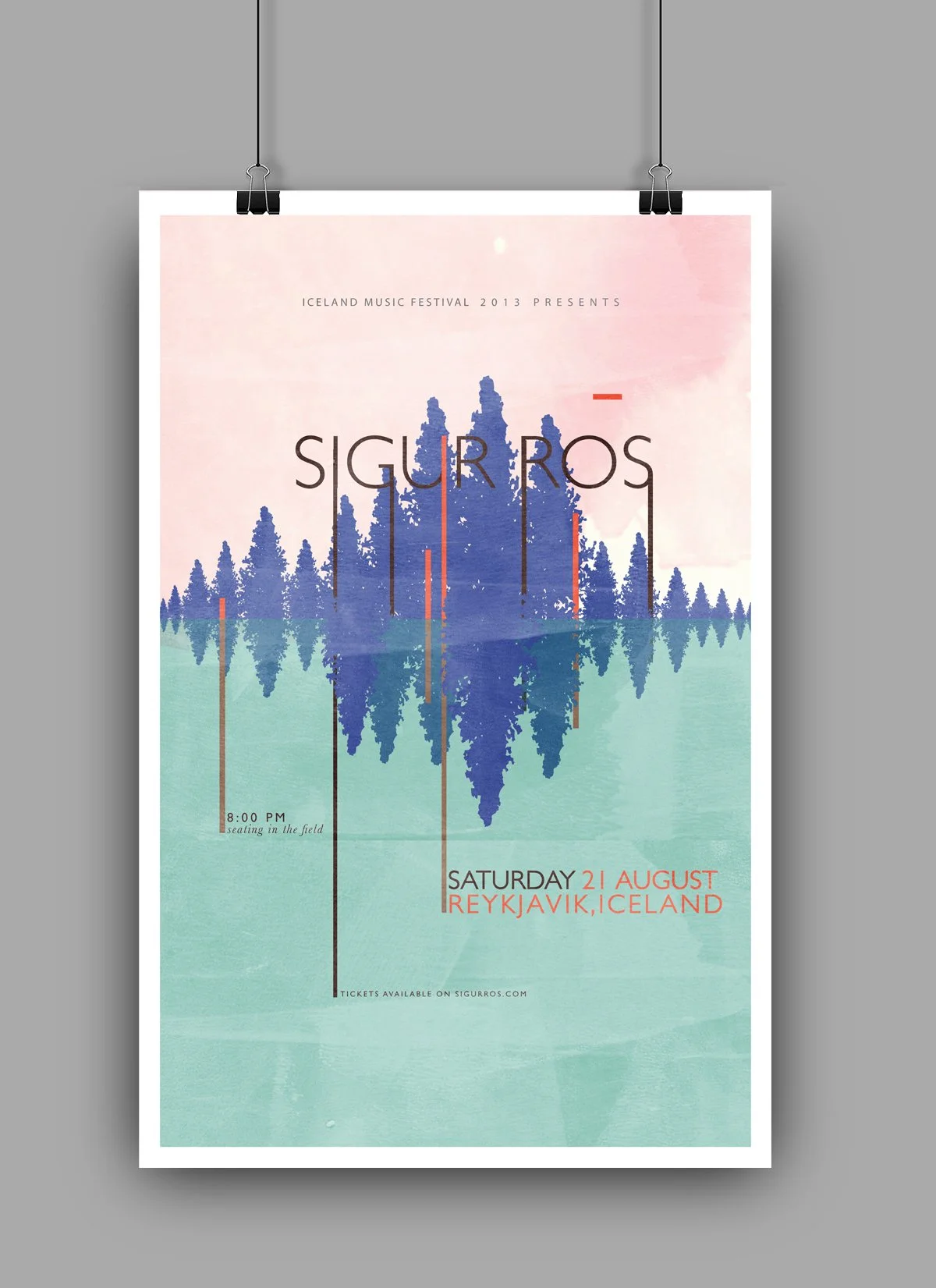 This poster was designed for a BFA assignment in Digital Illustration. It is a concept design using the name of the popular band, based out of Iceland.